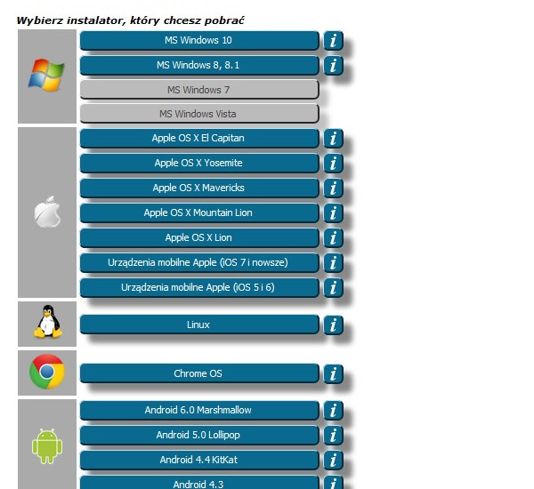 , który przekieruje nas do odpowiedniej strony z możliwością wyboru instalatora do innego systemu