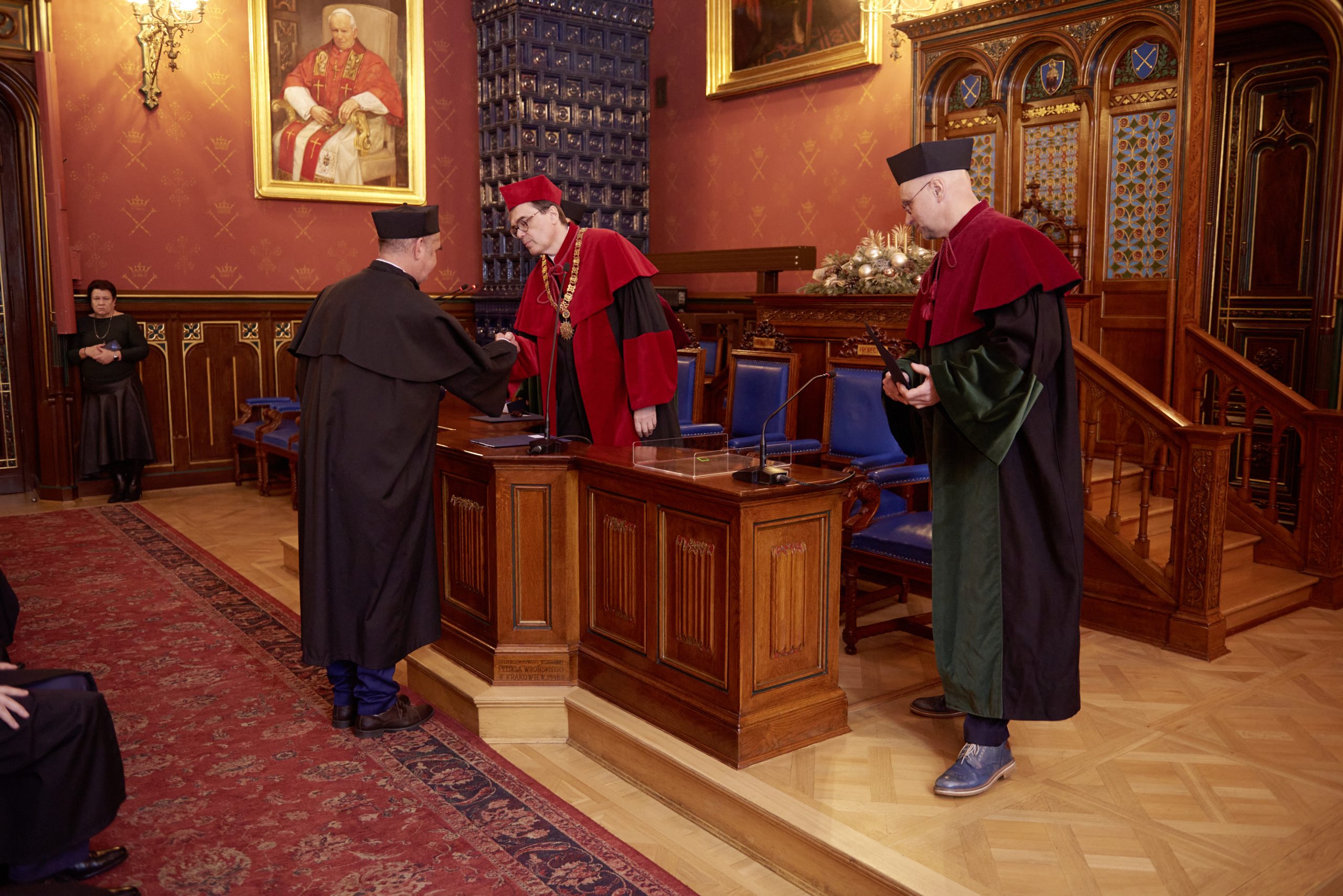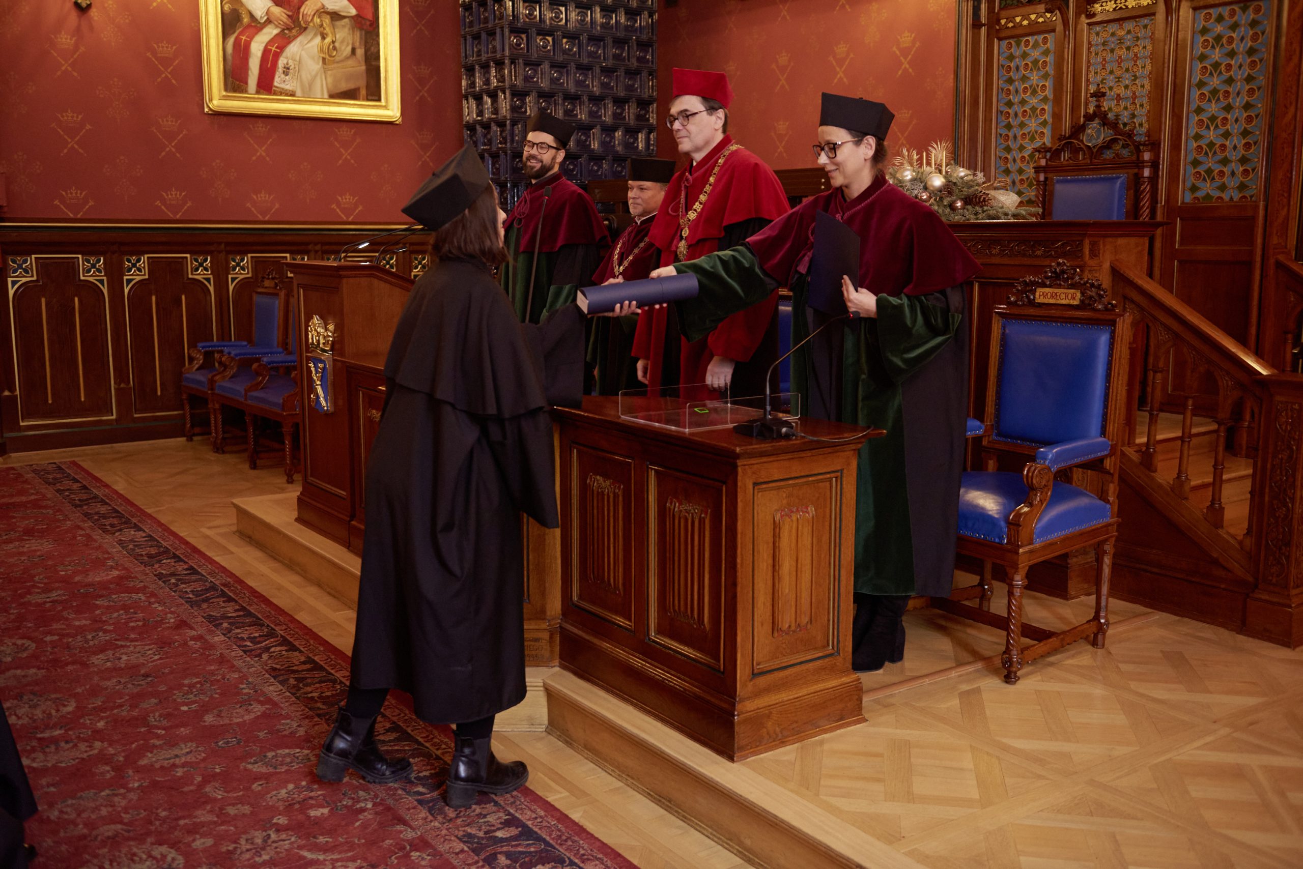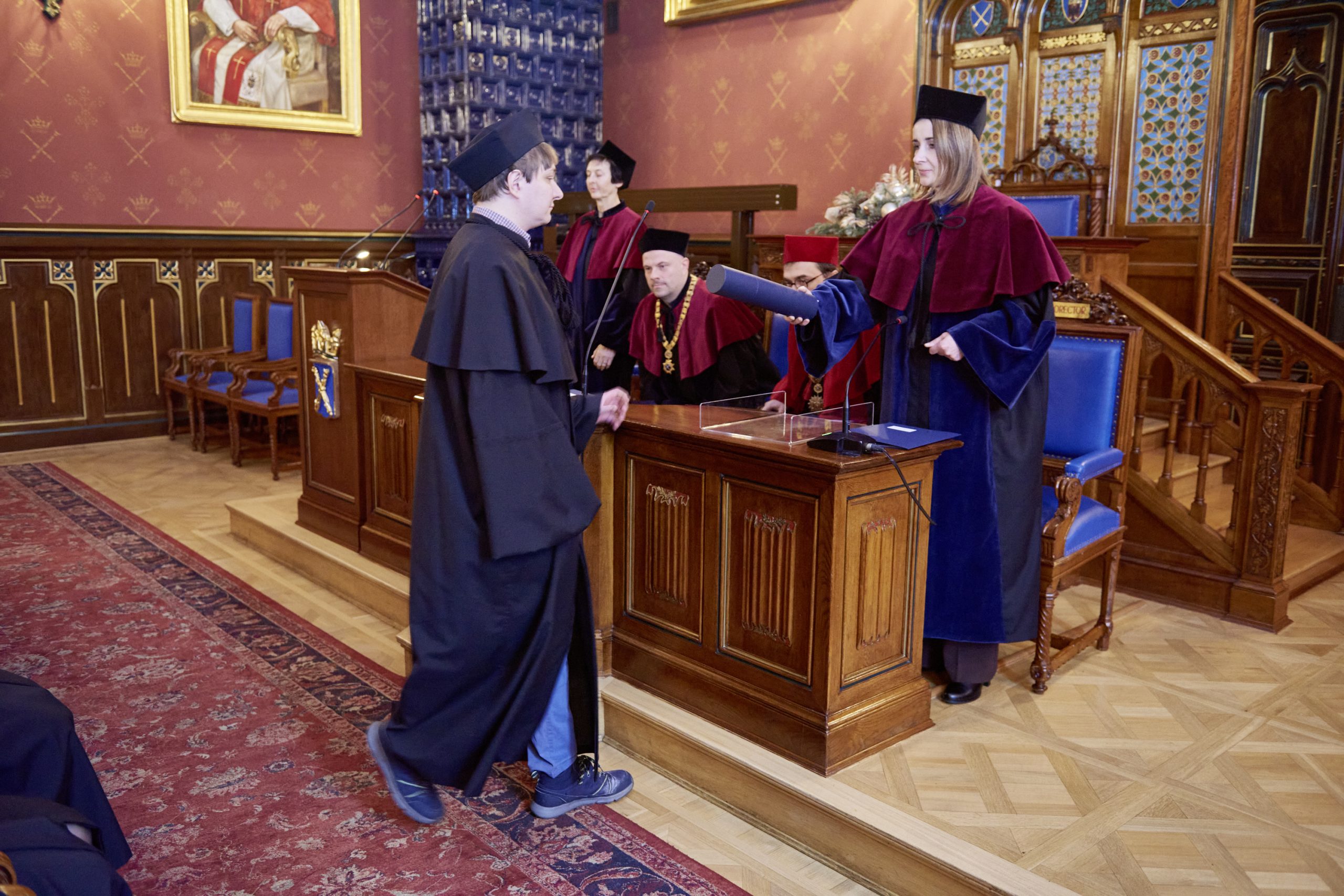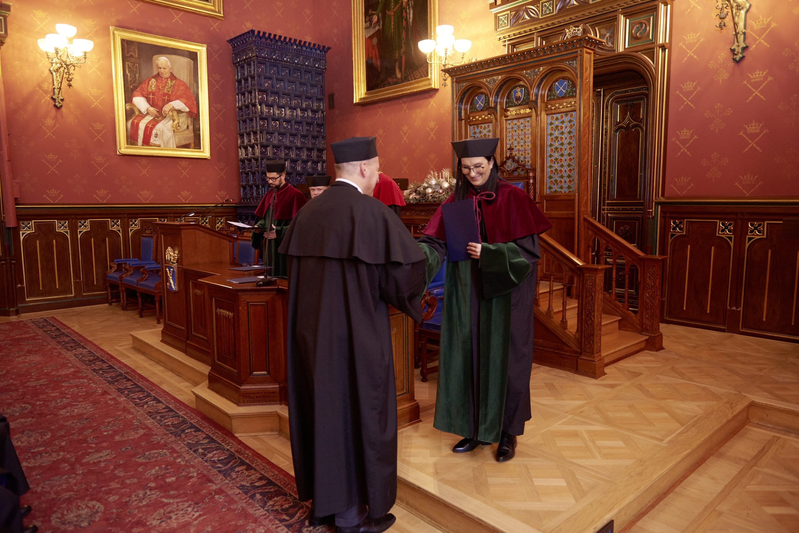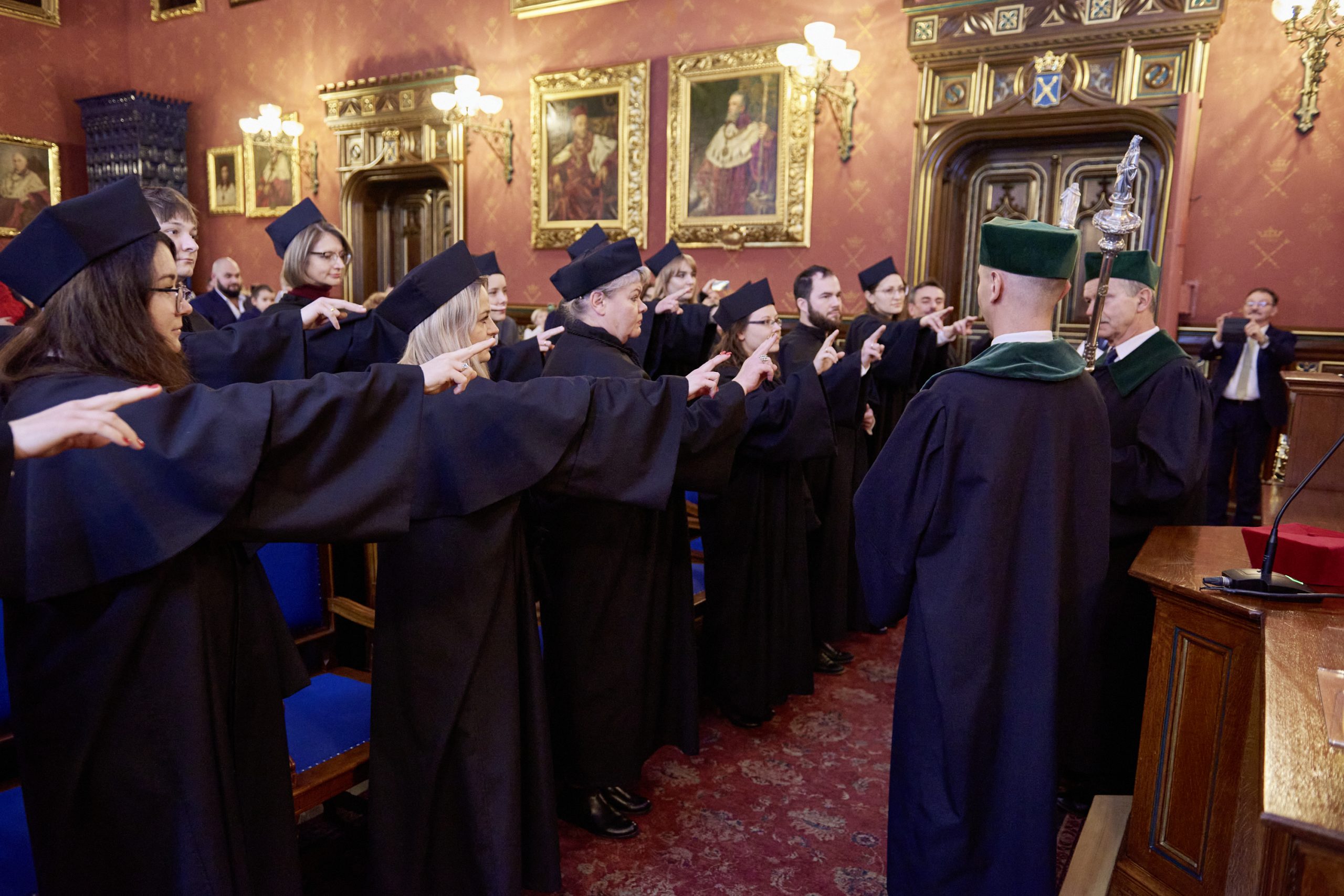 27 promowanych złożyło przysięgę doktorską i odebrało dyplomy z rąk promotorów.