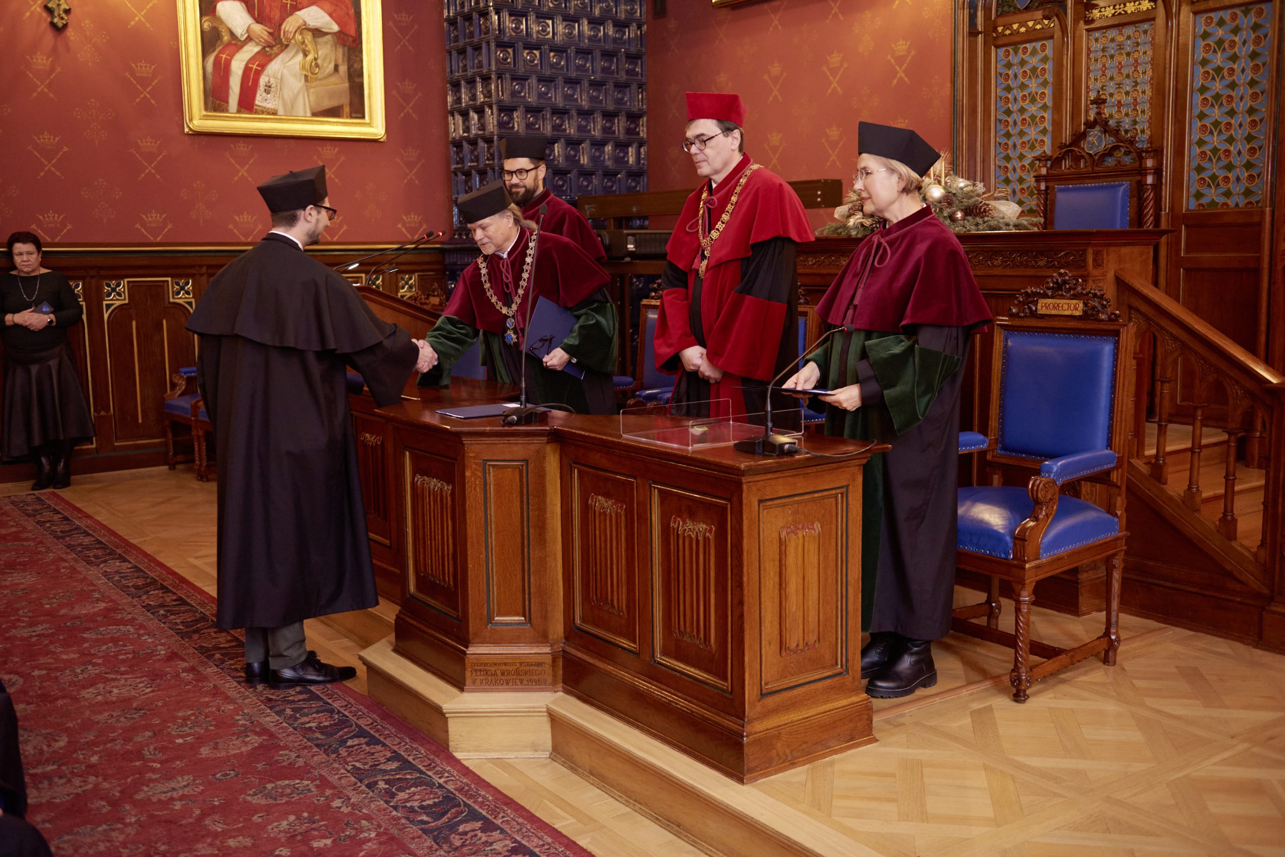 13 stycznia w Sali Senackiej Collegium Novum odbyły się promocje doktorskie Wydziału Farmaceutycznego i Wydziału Nauk o Zdrowiu UJ CM, którym przewodniczył prof. Maciej Małecki, prorektor Uniwersytetu Jagiellońskiego ds. Collegium Medicum. Stopnie doktorskie zostały nadane przez Radę dyscypliny Nauki farmaceutyczne oraz Radę Dyscypliny Nauki o zdrowiu.