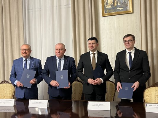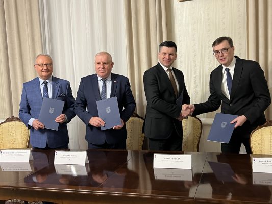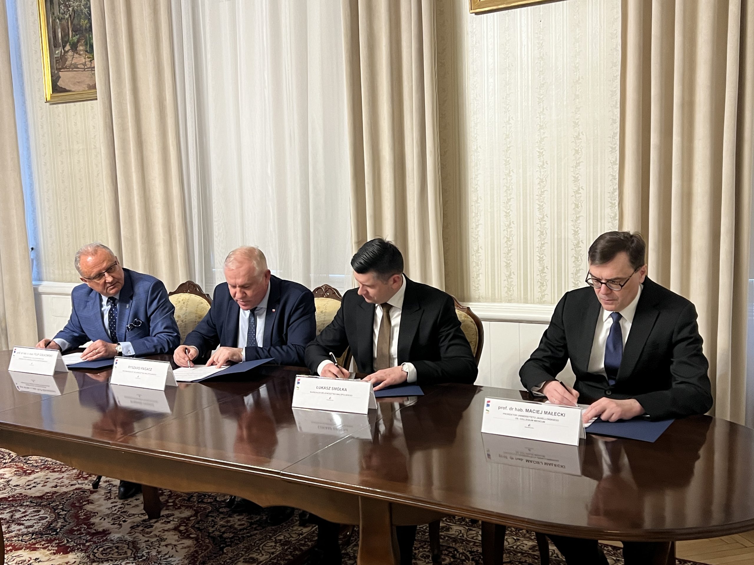 List intencyjny między UJ CM i małopolskim samorządem podpisali marszałek województwa małopolskiego Łukasz Smółka, wicemarszałek województwa małopolskiego Ryszard Pagacz oraz prorektor UJ ds. Collegium Medicum prof. Maciej Małecki.