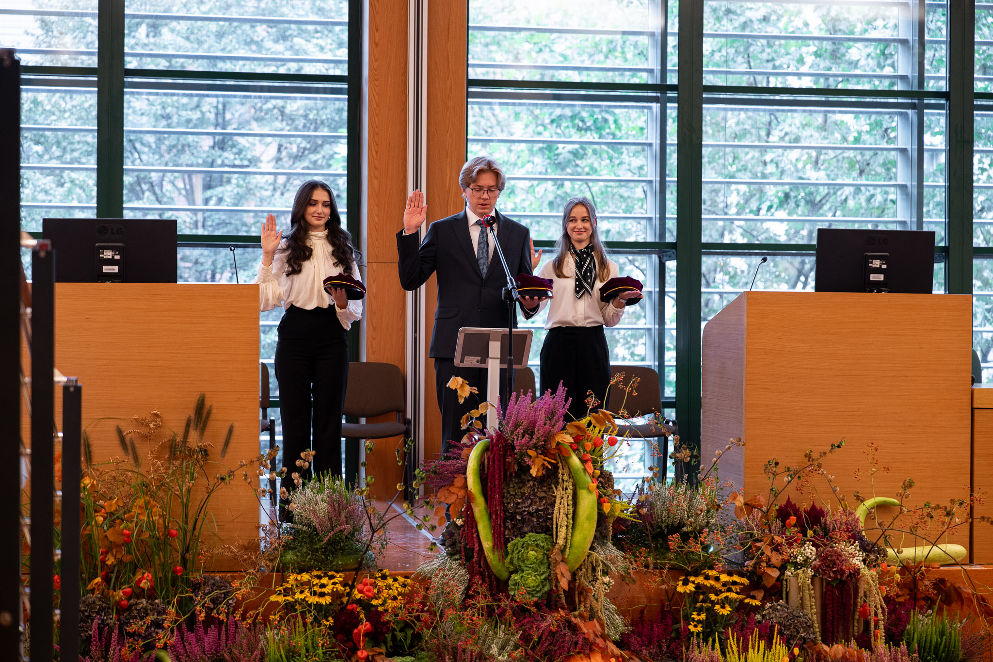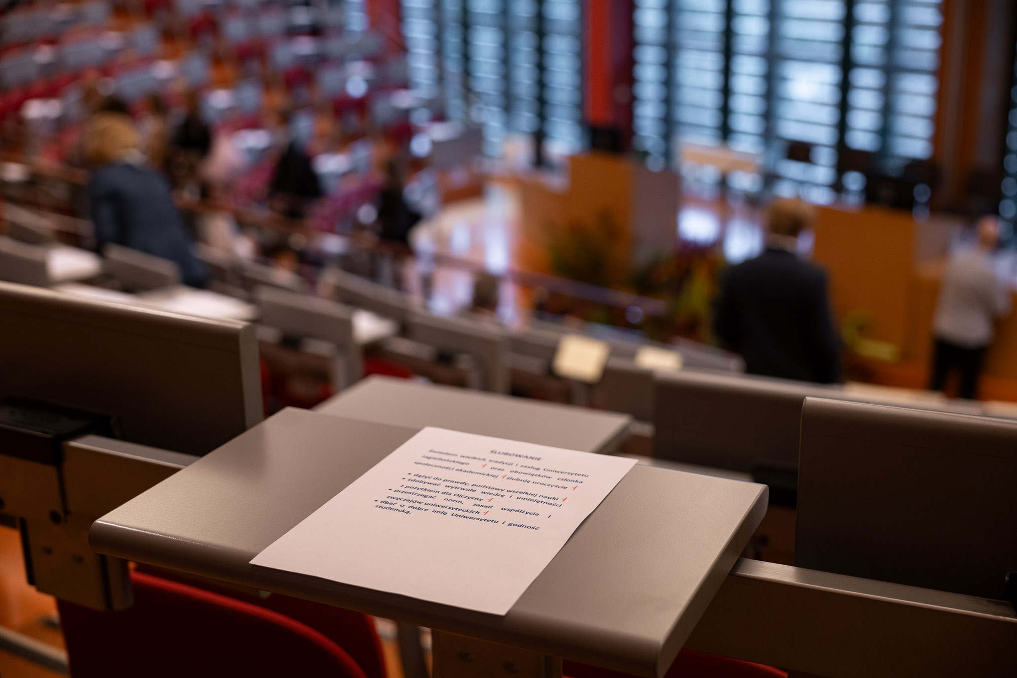 Uroczystość zakończono wysłuchaniem hymnu Gaudeamus Igitur, a świeżo upieczeni studenci otrzymali od pracowników dziekanatu uniwersyteckie upominki.