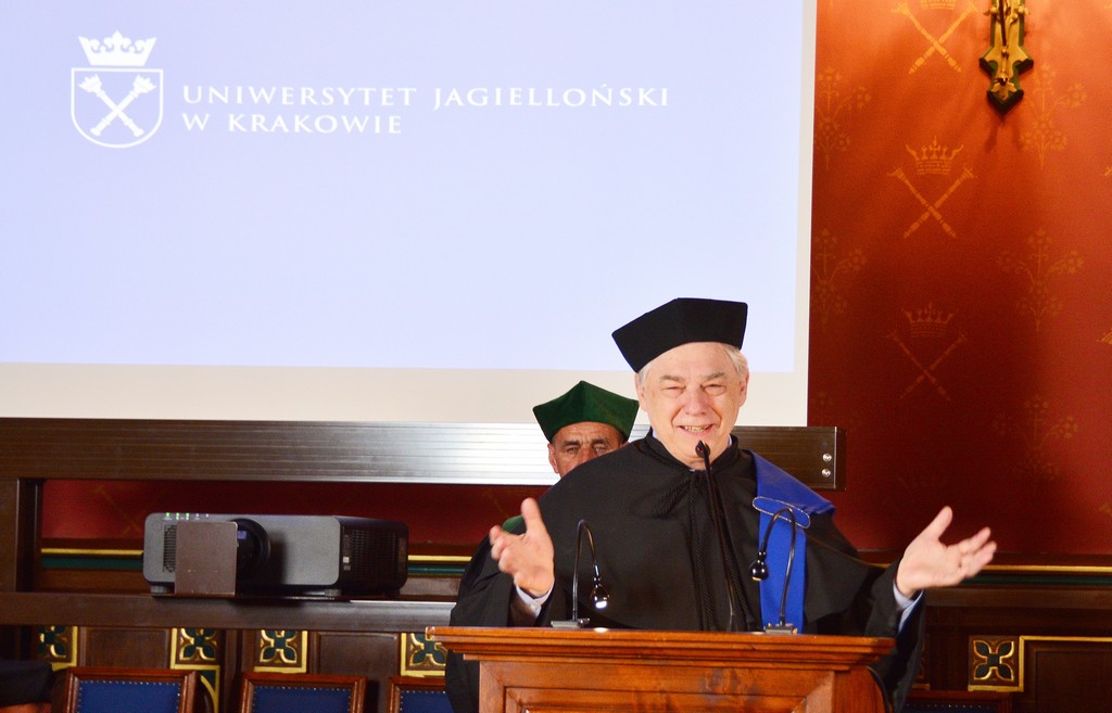 - Nie ukrywam, że występując w tej roli, znajduję się w złożonej sytuacji. Wydawałoby się prostej, a jednak trudnej. Pozornie wydaje się, że przedstawienie jednej z najbardziej ikonicznych postaci światowej diabetologii powinno być bardzo proste. Jednak z drugiej strony, jak w tak krótkim wystąpieniu przedstawić w sposób wyczerpujący tak wybitnego, niebanalnego, bezkompromisowego naukowca i wspaniałego człowieka? Zadanie laudatora utrudnia fakt, że dokonanie nawet najlepszego wyboru osiągnięć naukowych profesora Królewskiego i przedstawienie ich nie odda w pełni obrazu tego niezwykłego człowieka. By zrozumieć dlaczego cieszy się on w środowisku naukowym tak wielkim autorytetem, należałoby spędzić z nim trochę czasu, zobaczyć jak planuje i organizuje pracę, odbyć kilka fascynujących rozmów naukowych, parę razy zjeść wspólnie lunch, posłuchać jak dyskutuje z innymi wybitnymi naukowcami, z jaką łatwością wchodzi z nimi w polemiki i jak konsekwentnie broni swoich racji - mówił prof. Tomasz Klupa z Wydziału Lekarskiego UJ CM.